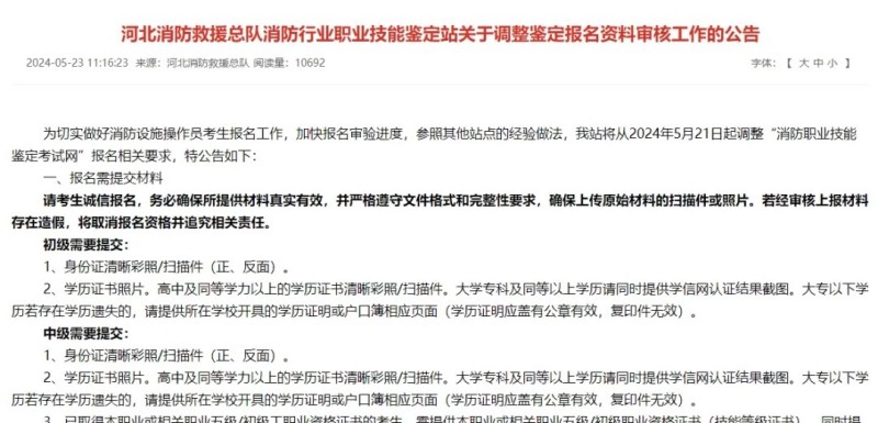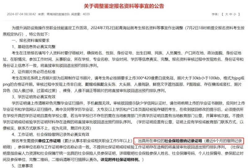 2024年5月,山東、陜西、云南、河南,甘肅5省均要求新增6個月社保證明。同時,河北站發(fā)布關于調(diào)整報名資料審核公告,新增報名資料真實性現(xiàn)場抽查環(huán)節(jié)。