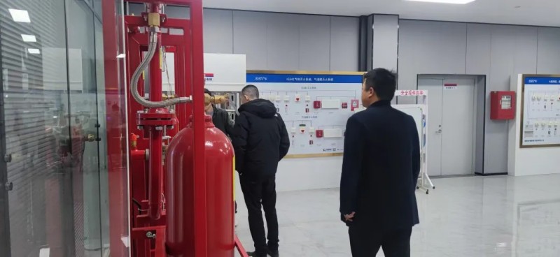 期間,朱總重點介紹了氣體滅火系統(tǒng)的原理與應用場景,并強調(diào)氣體滅火系統(tǒng)的常見隱患與應對方式,針對考察組的提問都作出了專業(yè)解答。